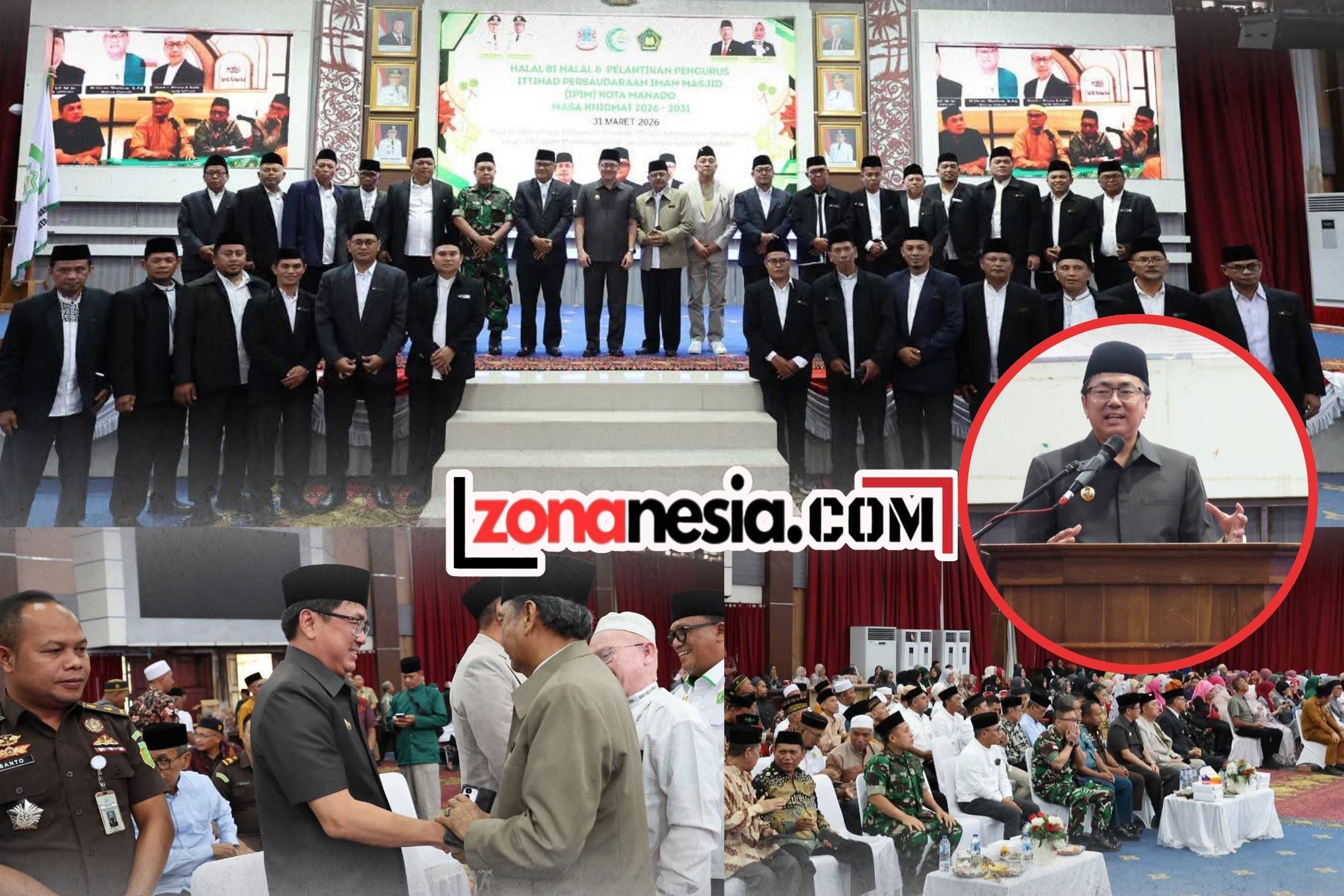 zonanesia.com – Wali Kota Manado, , menghadiri kegiatan Halal Bi Halal yang dirangkaikan dengan pelantikan Pengurus Ittihad Persaudaraan Imam Masjid (IPIM) Kota Manado Masa Khidmat 2026–2031. Kegiatan tersebut berlangsung di Aula Serbaguna Kantor Wali Kota Manado, Selasa (31/3/2026).
