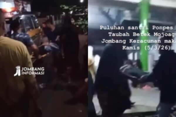zona-nesia.com – Puluhan santri di Pondok Pesantren Sholawat Darut Taubah, Mojoagung, Jombang, Jawa Timur, dilaporkan mengalami dugaan keracunan massal setelah menyantap menu Makan Bergizi Gratis (MBG) saat berbuka puasa bersama. Peristiwa tersebut menjadi sorotan publik setelah beredar unggahan di media sosial Instagram melalui akun @jombanginformasi_, Sabtu (7/3/2026). Dalam unggahan itu disebutkan sejumlah santri dilarikan ke…