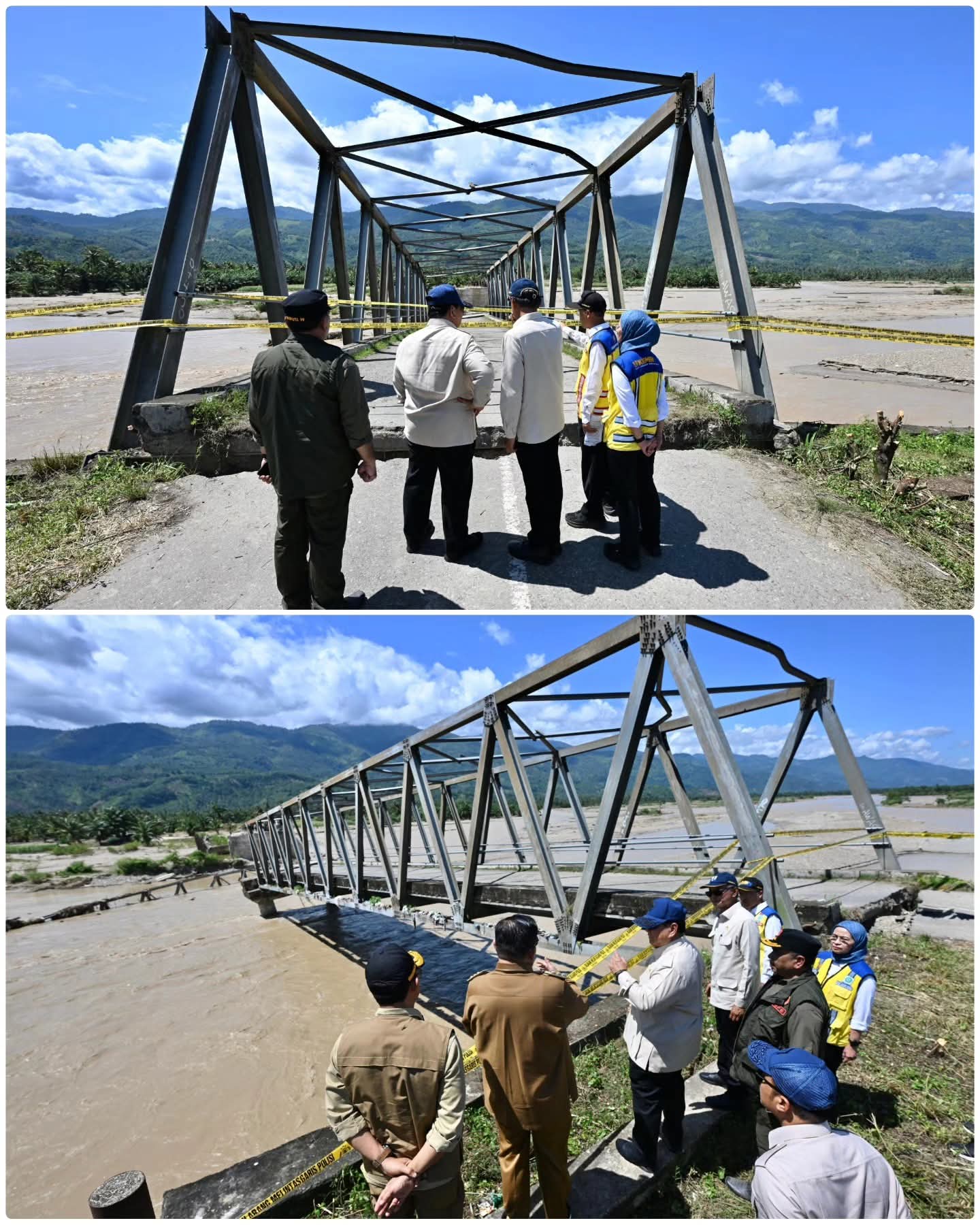 Setibanya di Kutacane, Presiden langsung meninjau Jembatan Pante Dona yang putus total akibat banjir besar. Kerusakan tersebut menyebabkan ribuan warga terisolasi dan jalur logistik terhenti sepenuhnya.