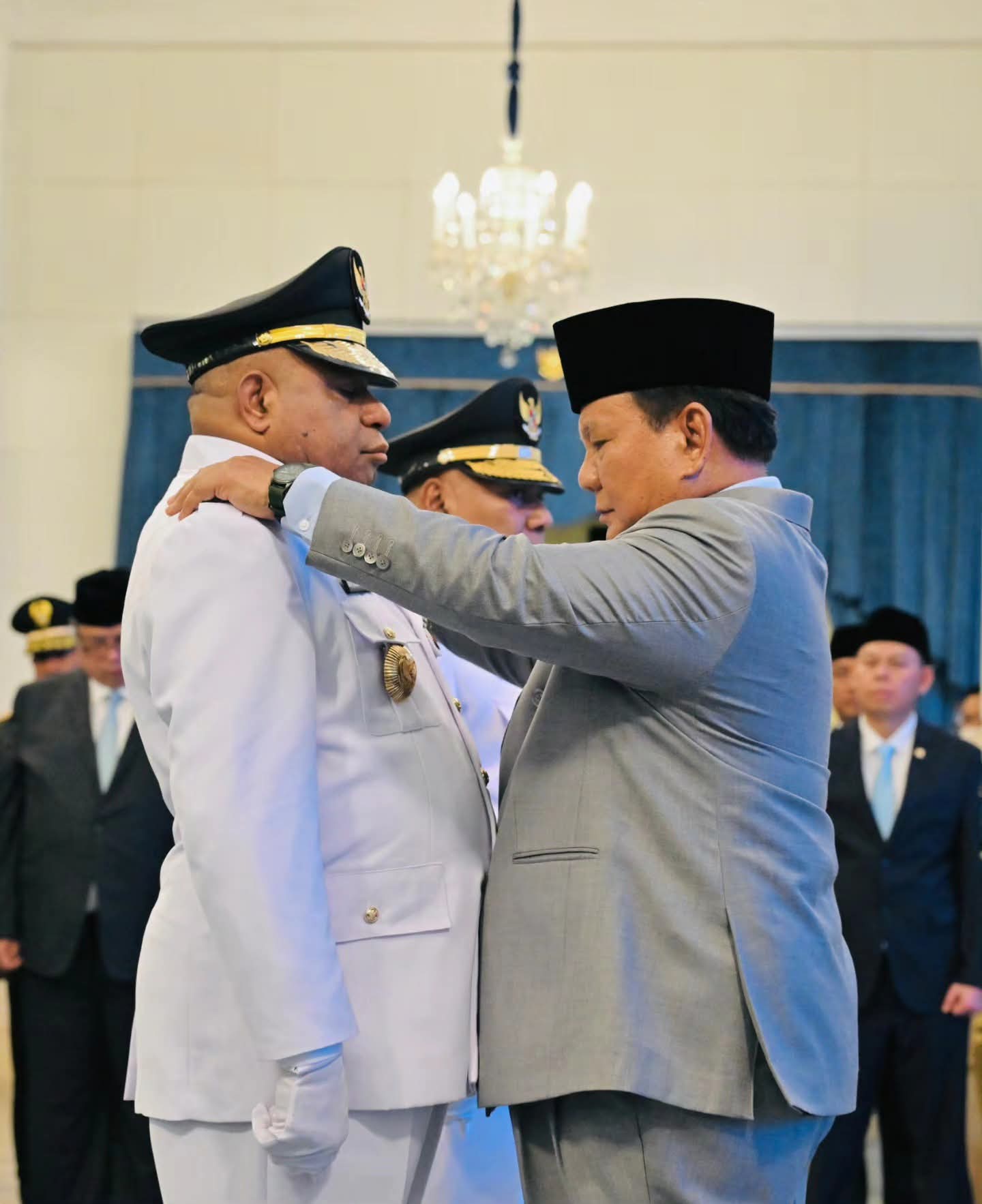 Pelantikan tersebut dilakukan berdasarkan Keputusan Presiden (Keppres) Nomor 108P Tahun 2025 tentang pemberhentian pejabat lama serta pengesahan pengangkatan Gubernur dan Wakil Gubernur Papua.