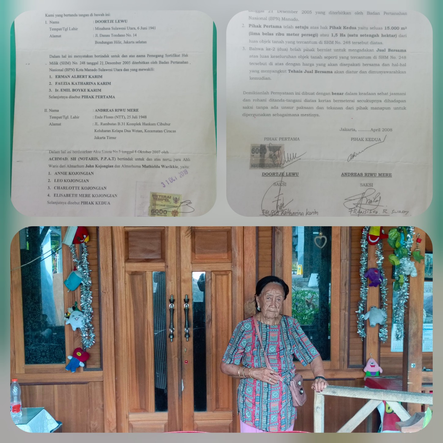 Oma Kojongian pertanyakan darimana datangnya sertifikat 248 yang menjelaskan bahwa luas tanah milik Almarhum Mochtar Karim menjadi 8,4 Hektar.